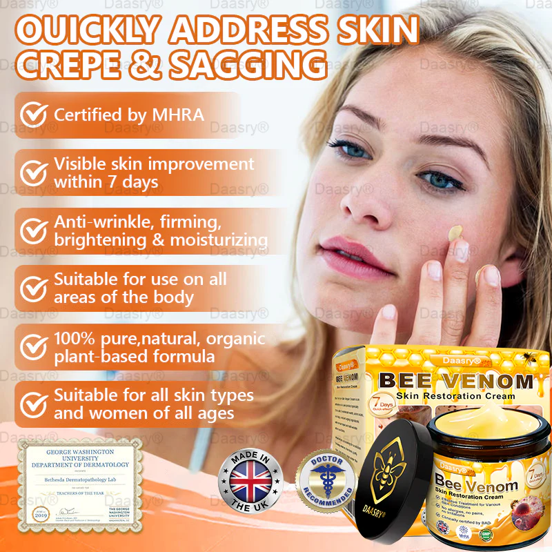 Daasry® Bee Venom Skin Restoration Cream addresses all the problems associated with sagging skin, wrinkles and more!