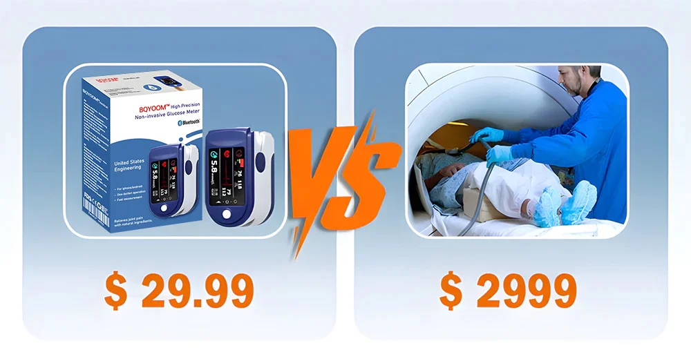 For people with diabetes who are tested three times a day, the annual cost of blood glucose monitoring can range from $3,000 to $4,000, depending on the location and type of supplies. In some cases, these can cost as much as $3,999 or more and include test strips, lancets, CGM (continuous glucose monitoring) equipment, maintenance, and software subscriptions. Switching to non-invasive equipment not only eliminates the discomfort associated with traditional methods, but also significantly reduces recurring costs, saving you up to 90% per year.