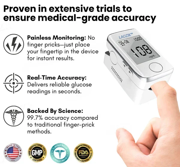 LAOZIK™ uses advanced infrared emission and multi-sensor integration technology to measure blood glucose levels at your fingertips, providing accurate, non-invasive results. - IS LAOZIK™ ACCURATE?