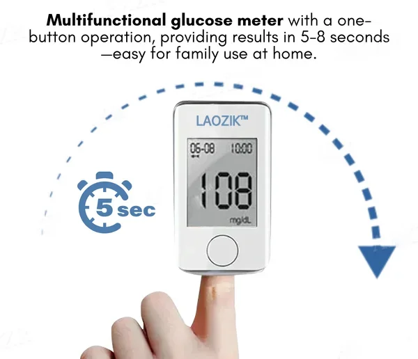 LAOZIK™ is a breakthrough solution that leads the future of blood glucose management by providing accurate blood glucose monitoring without the need for painful fingerstick blood. LAOZIK™ is designed with convenience and ease of use in mind, allowing you to monitor your blood sugar levels anytime, anywhere. The device is operated with one touch, making it easy for family members to use whether they are at home or on the go. Get accurate results in as little as 5-8 seconds, and say goodbye to the cumbersome and uncomfortable traditional blood glucose testing methods. LAOZIK™ offers an easy and convenient experience to help you stay healthy without compromising your daily life.